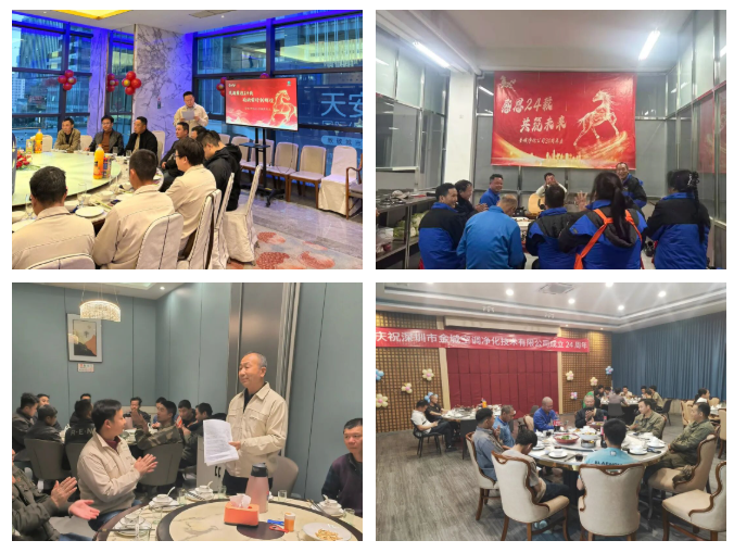 因地域分布广,公司位于深圳总部、安徽工厂、南通及泰国等的项目处分别组织周年庆聚餐活动,共庆金城24周年。虽山川相隔,但心意相通,让我们在各地举杯同庆,共祝未来!